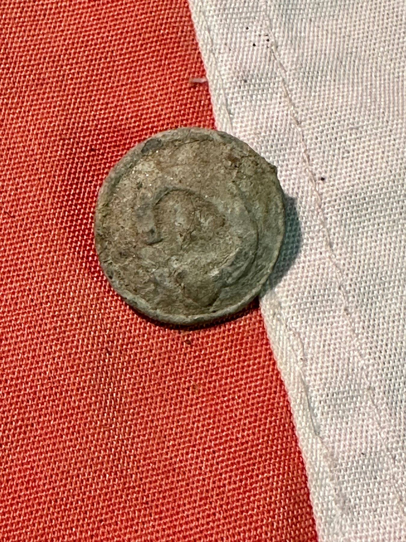 DUG CIVIL WAR CONFEDERATE "C" PEWTER BUTTON. IT IS IN MINT OVERALL SHAPE AND CONDITION WITH A BEAUTIFUL OVERALL DUG PATINA. A GREAT FIND AND AN EXCELLENT ADDITION TO YOUR COLLECTION.