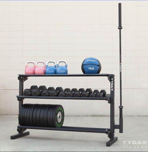 THREE DUMBBELL SHELVES, IMAGE SHOWS ALL 3 TYPES OF SHELVING BUT WILL ONLY COME WITH PREVIOUSLY STATED SET UP. **WEIGHTS & DUMBELLS NOT INCLUDED**