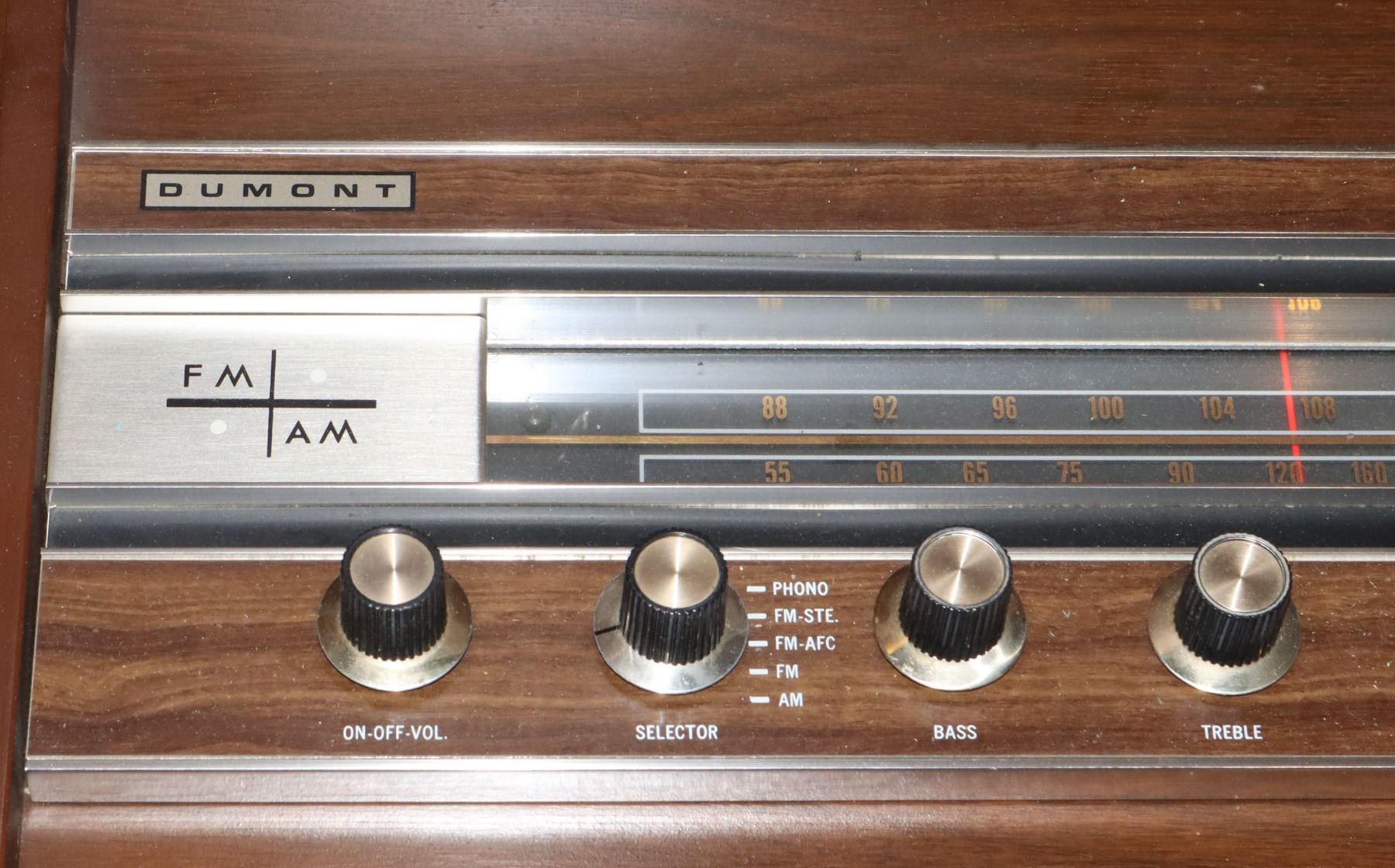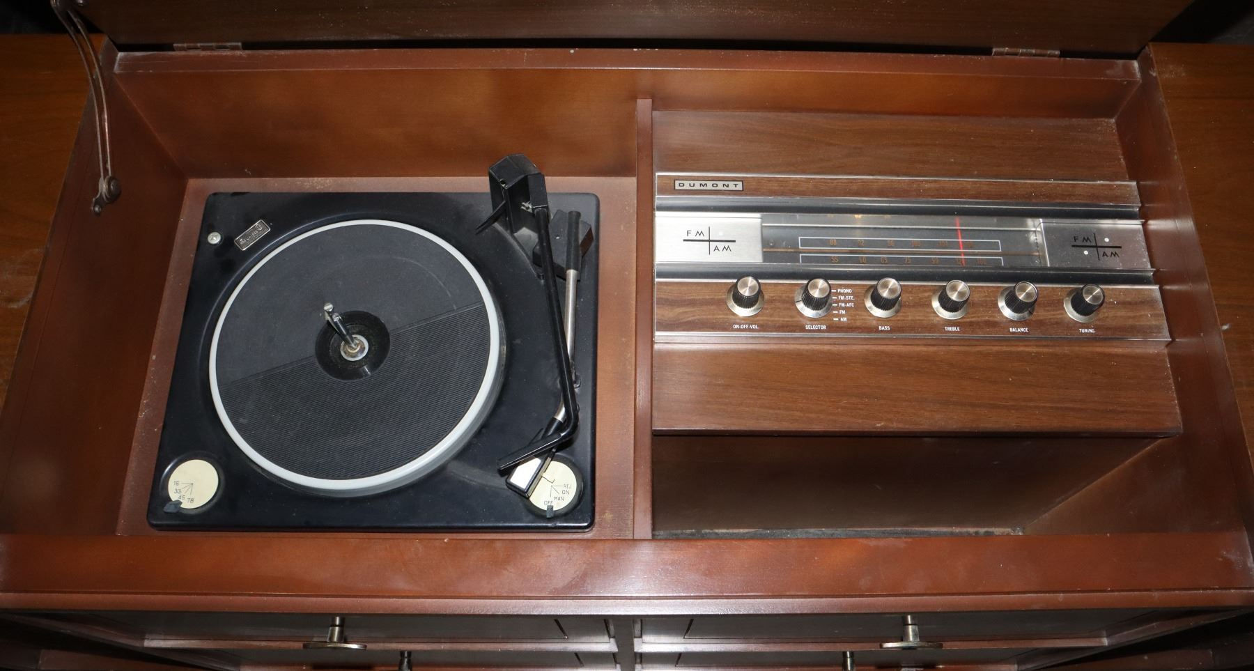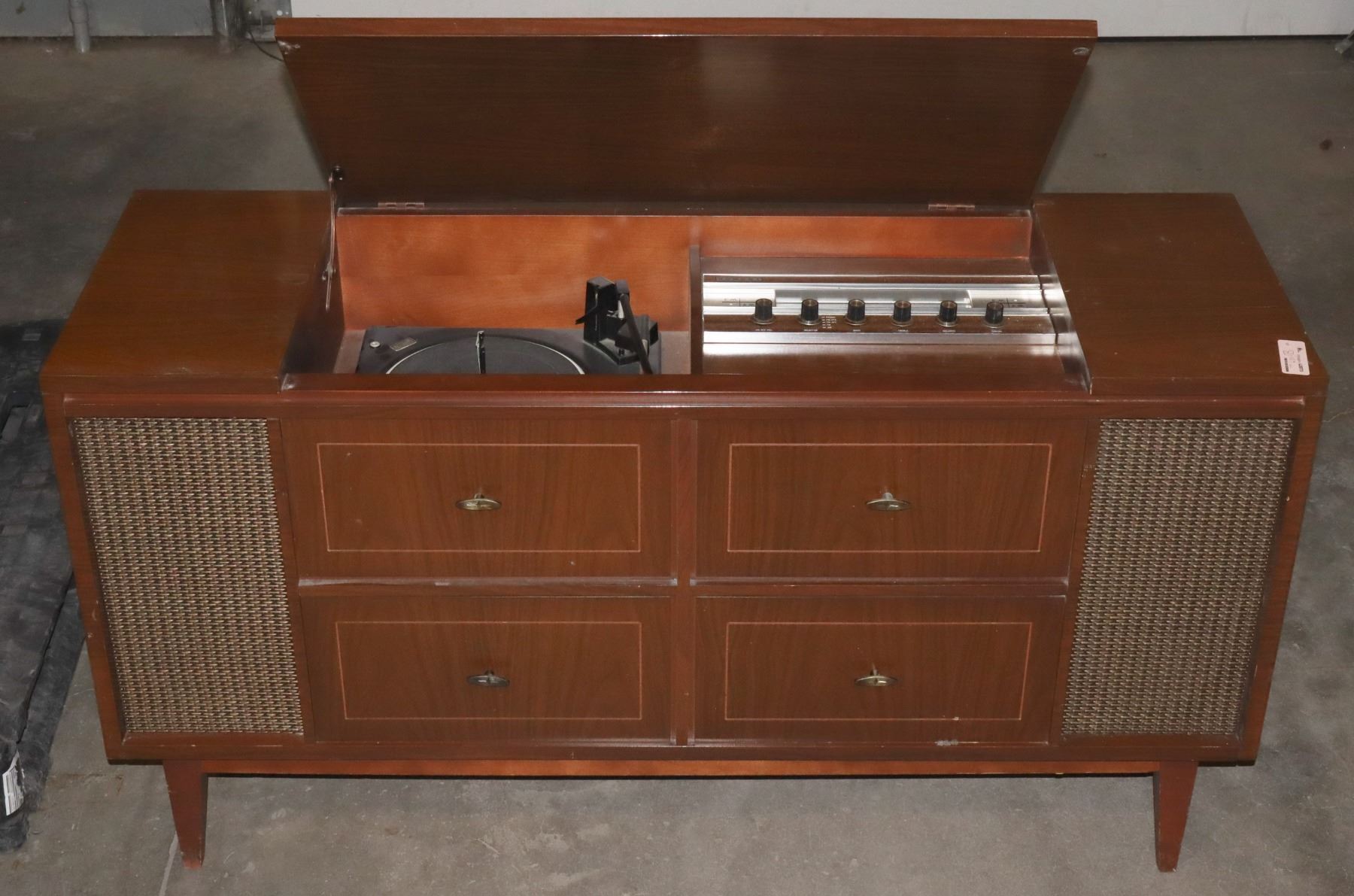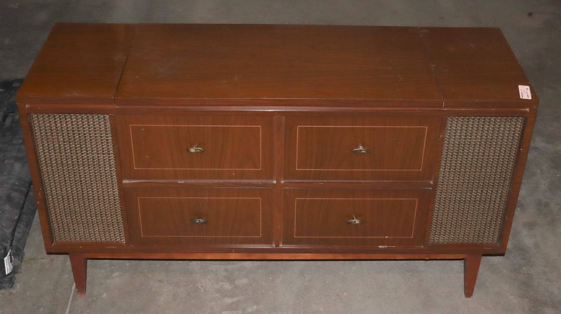 AM/FM, RECORD PLAYER. APPROX 48" X 16" X 26" TALL. WORKING