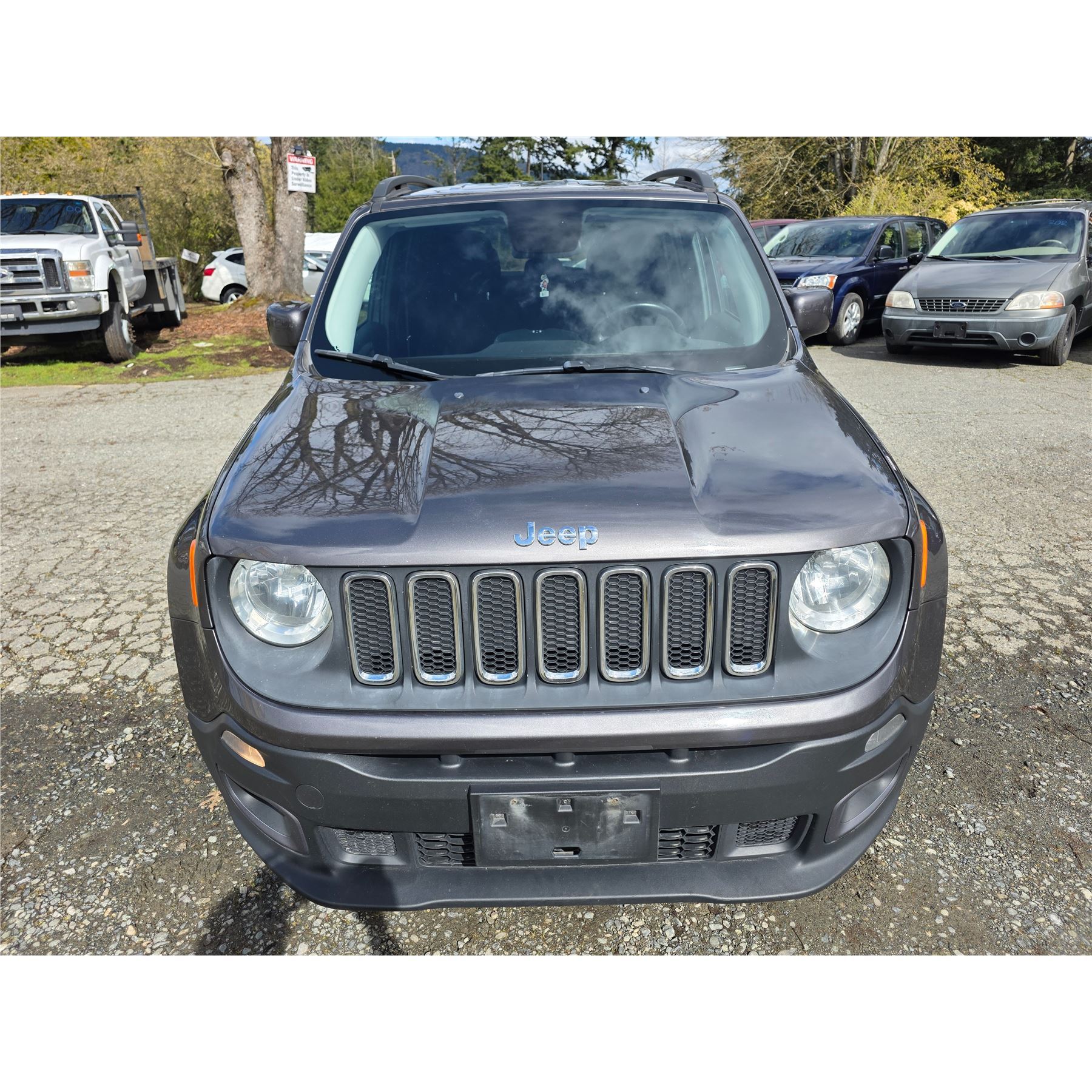 2016 JEEP RENEGADE 194522 KMS 1.4L GASOLINE MANUAL 4WD 5 PASSENGERS AIR CONDITIONING, POWER WINDOWS, POWER LOCKS, POWER MIRRORS, DUAL AIR BAGS, KEY-LESS ENTRY, CRUISE CONTROL, TILT STEERING, BLUETOOTH, STEERING WHEEL CONTROLS, TRACTION CONTROL, BACK UP CAMERA, ALLOY WHEELS EX-OUT OF PROVINCE DESIGNATIONS 1 ACCIDENT 4 GLASS CLAIMS TOTALLING $1514 NOT MECHANICALLY INSPECTED, NOT SUITABLE FOR TRANSPORTATION. MUST TOW. 27 RECORDS OF SERVICE