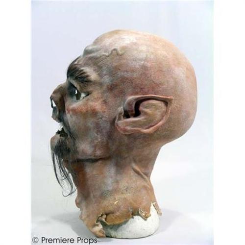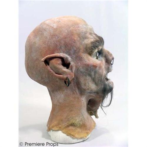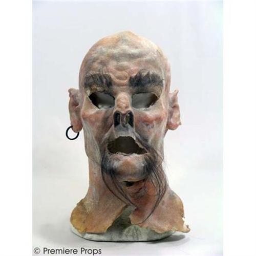 DUNGEONS & DRAGONS - A detailed facial mask screenworn by a Half-Orc in the fantasy epic DUNGEONS AND DRAGONS: WRATH OF THE DRAGON, based on the famous role playing game "Dungeons and Dragons". This 4" x 8" x 14 1/2" prosthetic features a latex mask with hand inserted bushy black eyebrows and wispy facial hair. The mask features intricately painted and heavily detailed facial features and a tarnished metal earring though an ear. There are cut outs for the nose, mouth and eyes. There are some tears and minor scuffing on this heavily studio-aged item. This is a unique and intriguing movie prop that is sure to turn heads in your collection! (DD3003)