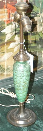 DURAND CRACKLE GLASS LAMP BASE early 20th century, 23" overall, condition: glass good, lacking finial. PACKING AND SHIPPING (excluding insurance) $40,