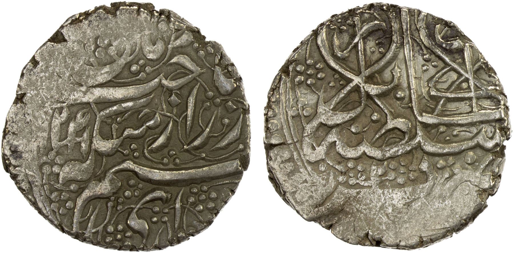 DURRANI: temp. Sultan Muhammad, 1824-1826, AR rupee (9.80g), Kabul, AH1241 year 2, A-3137B, legend translation "O strike silver and gold with the dies of the Master of Time"; about 10% flat strike, XF, R.