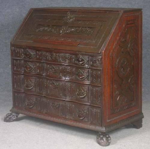 DUTCH 18TH CENTURY CARVED DROP FRONT DESK with Northwind face, height: 39 1/2", width: 40" depth: 21"
