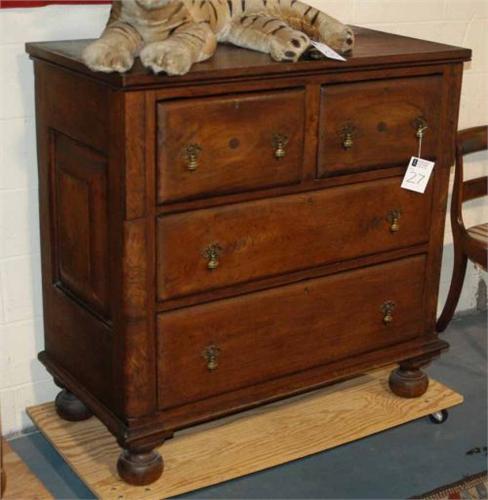 "DUTCH BAROQUE STYLE CHEST with turnip feet, walnut 19th century (top drawers re-bored) "
