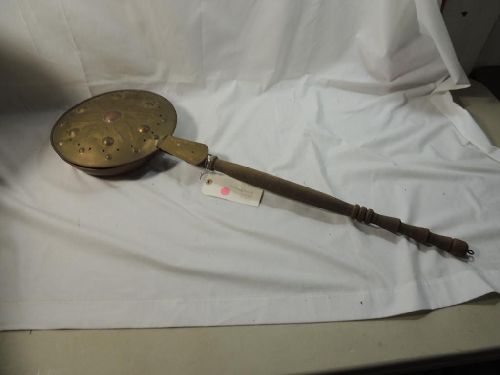 DUTCH BRASS BEDWARMER. AS SHOWN. SEE PHOTO FOR MORE DETAILS.