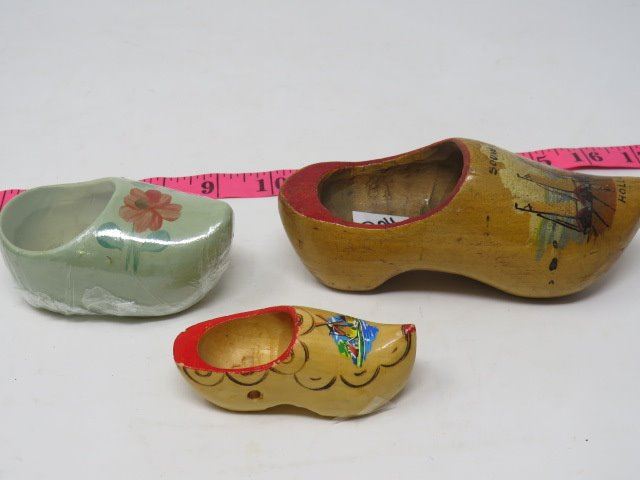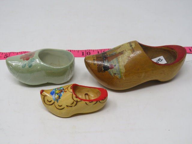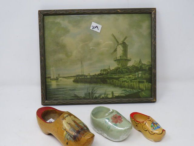 DUTCH PRINT (FRAMED) & 3 MINIATURE DUTCH CLOGS