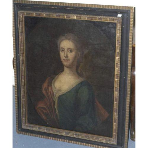 DUTCH SCHOOL PORTRAIT OF A LADY, 30"x24" oil on canvas, early 19th century, CONDITION REPORT: scattered inpainting, dirty.