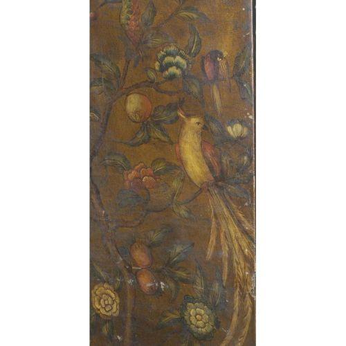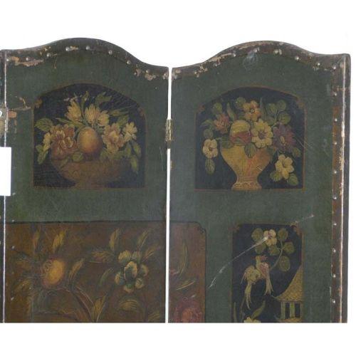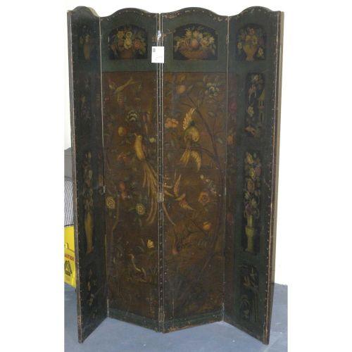 DUTCH STYLE PAINTED LEATHER SCREEN, 4 panels, circa 1930, CONDITION: wear, cracks, scuffs, some small paint loss