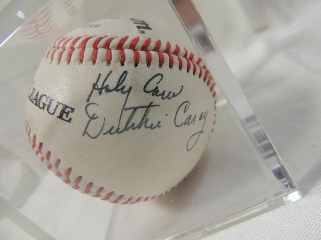 DUTCHIE CAREY AUTOGRAPHED BASEBALL NO COA. AS SHOWN. SEE PHOTO FOR MORE DETAILS. PLEASE BE ADVISED, AND INFORMED REGARDING SIGNATURES OR AUTOGRAPHS THAT WE SELL AT AUCTION: WE ARE NOT AUTHENTICATORS, AND WE DO NOT AUTHENTICATE, OR VALIDATE ANY AUTOGRAPHS OR SIGNATURES THAT WE OFFER AT AUCTION. SOME AUTOGRAPHS OR SIGNATURES MAY COME WITH AN AUTHENTICATION FROM ANY ONE OF LITERALLY HUNDREDS OF AUTHENTICATORS ACROSS THE COUNTRY, AND AROUND THE WORLD. WE DO NOT ENDORSE ANY AUTHENTICATOR, NOR DO WE GUARANTEE THAT ANY AUTOGRAPH OR SIGNATURE IS AUTHENTIC, OR THAT IT WILL PASS AUTHENTICATION BY ANY AUTHENTICATOR. ALL AUTOGRAPHS OR SIGNATURES ARE SOLD