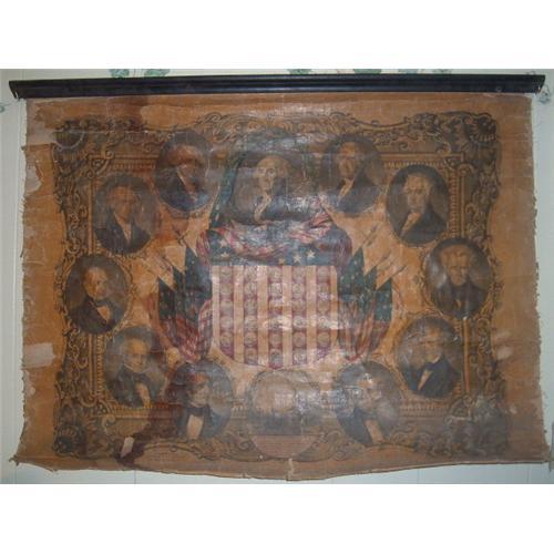 CONDITION: It is yellowed from age and stained. There is some acid or moisture damage. There is also condiderable flaking damage that is still unstable and needs restoration. All of the presidents and scenic of the columbus landing are intact. Freyed and flaking edges. SEE PHOTOS. Also, We would be happy to send you additional photos at your request.