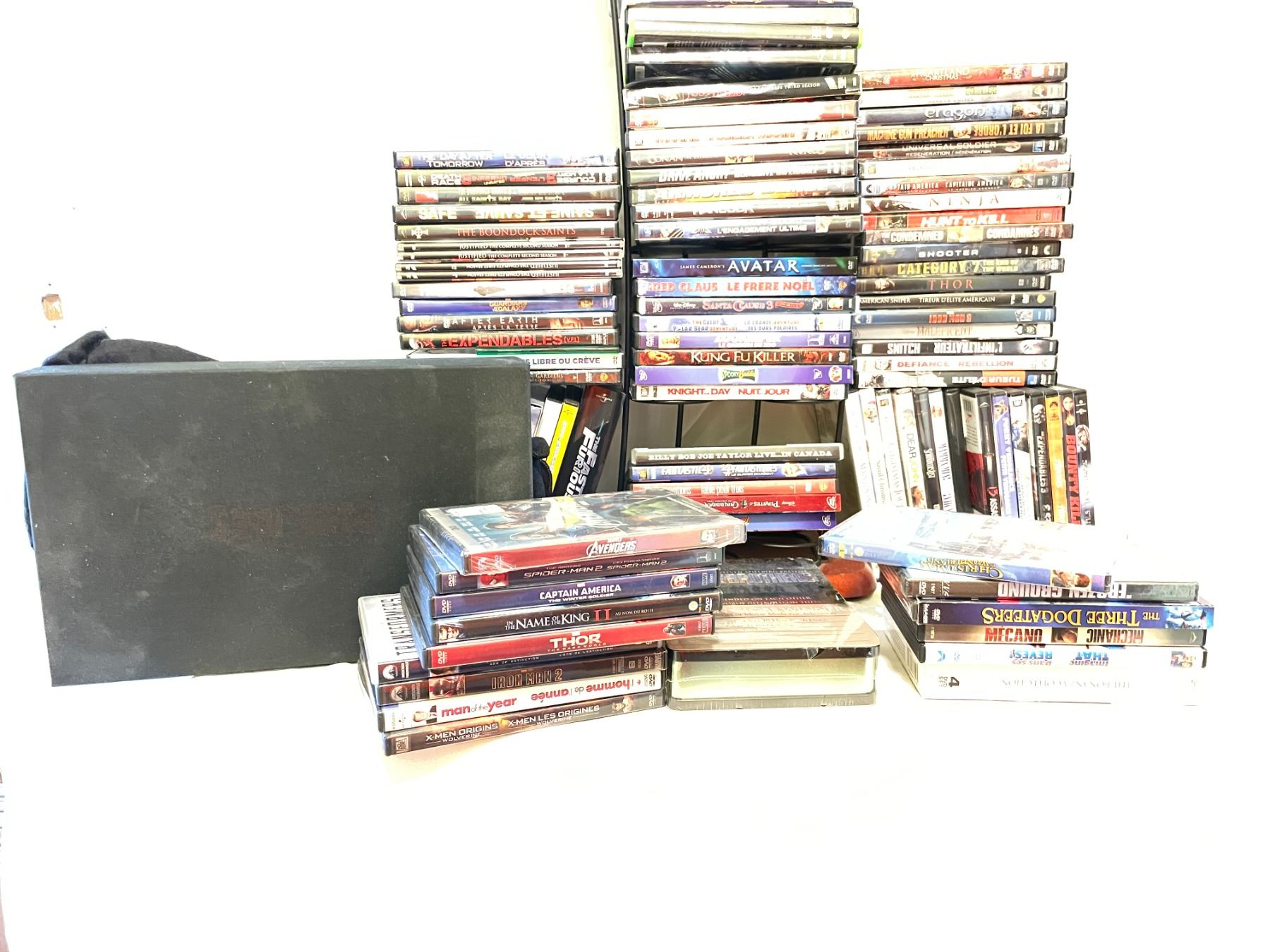 Includes over 100 DVD's from Soprano's full series, Christmas movies, Marvel movies etc