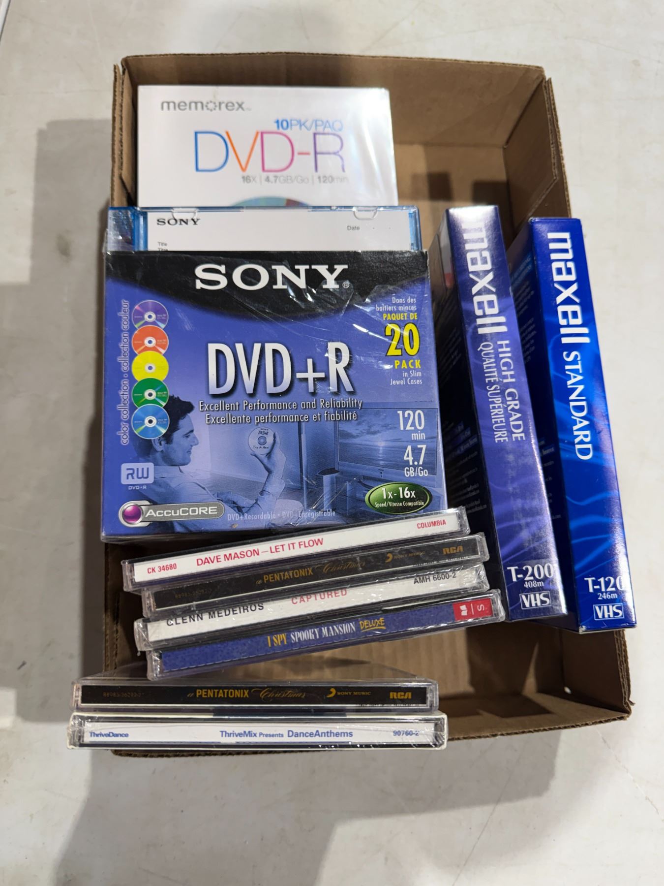 DVD plus R, CDs and Maxwell VHS tapes