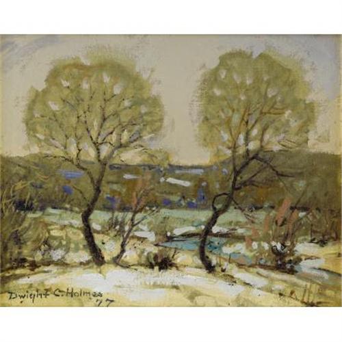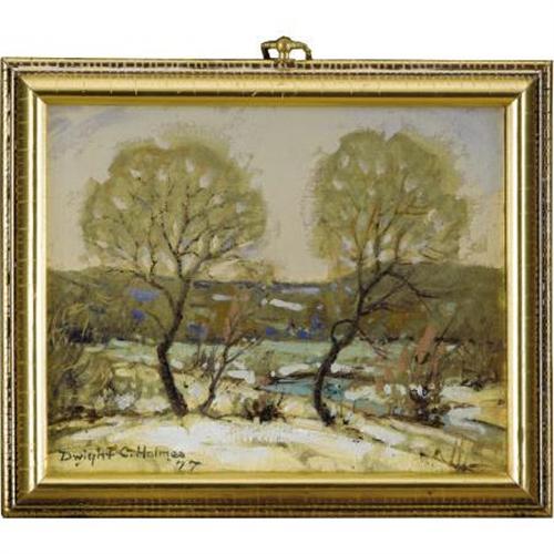<B>DWIGHT HOLMES (1900-1986)<BR></B></I>Untitled, 1977<BR>Oil on canvasboard<BR>8 x 10 inches (20.3 x 25.4 cm)<BR>Signed and dated lower left<BR><BR> <B>Condition Report:</B> Excellent condition. Period frame in excellent condition.<BR><BR><b>Shipping:</b> Requires 3rd Party Shipping (<a target="_blank" href="http://www.heritageauctions.com/common/shipping.php">view shipping information</a>)