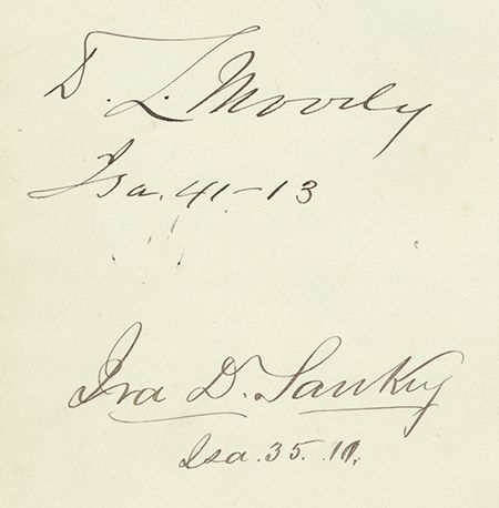 DWIGHT L. MOODY (1837-1899) American evangelist, made two tours with Ira D. Sankey and was widely popular. His signature, along with IRA SANKEY, executed on a vintage album sheet. Fine condition.