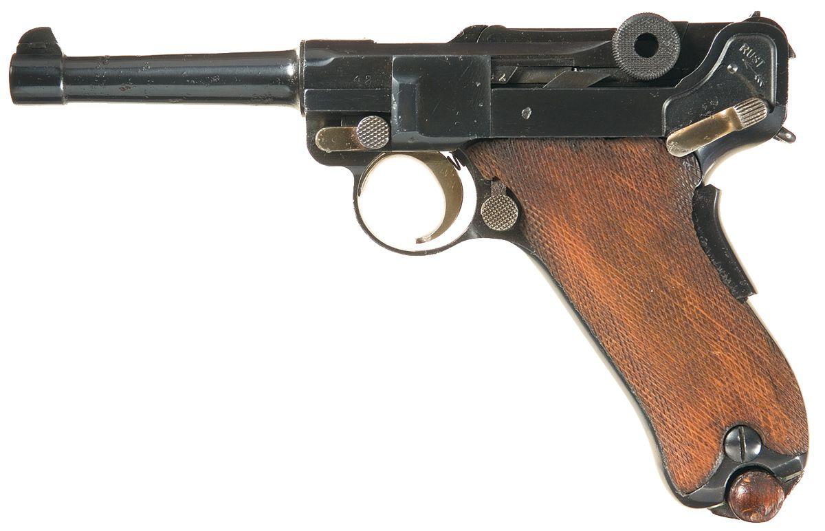 Fixed sights, "RUST" marked safety area with up arrow, matching numbers, checkered grips and wood based magazine.