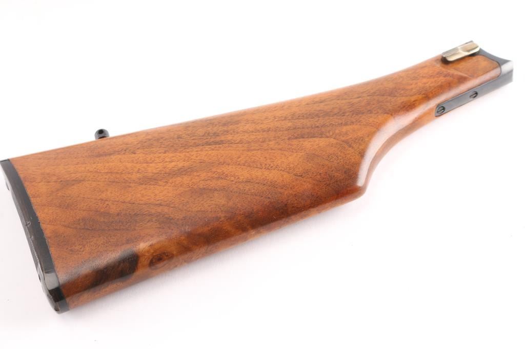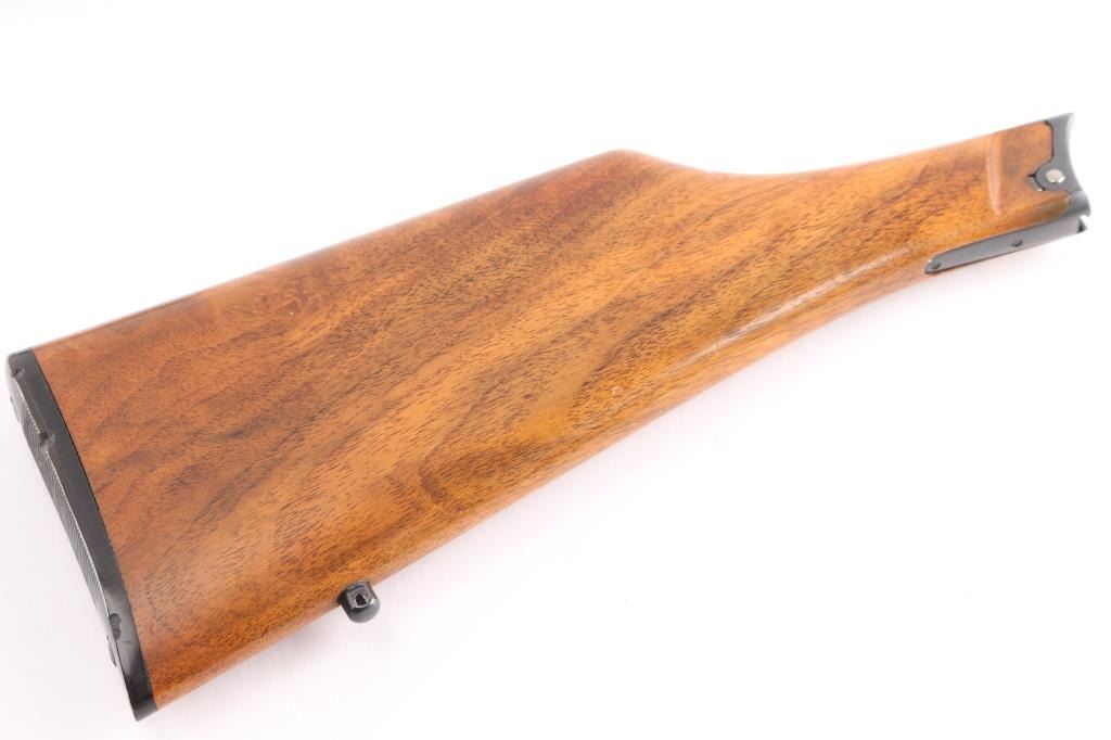 GOOD: Some minor replacement parts; metal smoothly rusted or lightly pitted in places, cleaned or re-blued; principal letters, numerals and design on metal legible; wood refinished, scratched bruised or minor cracks repaired; in good working order.