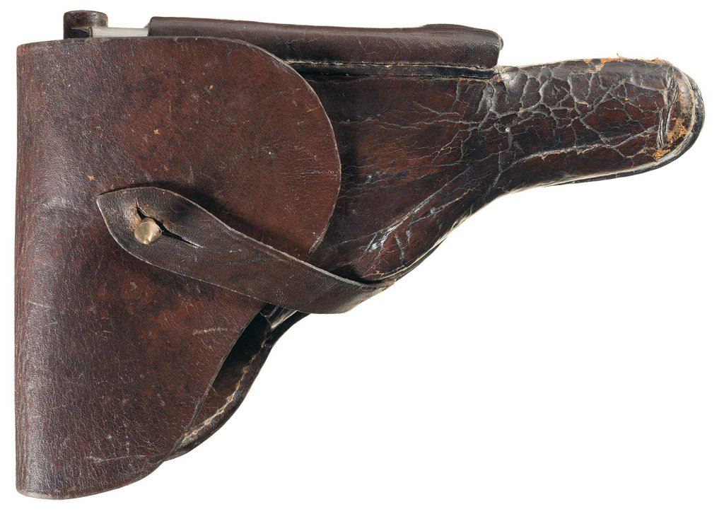 This is a desirable example of a DWM Model 1908 DWM Bulgarian contract military Luger. There were two contracts for this model with this example being from the first contract in which only 5,000 total were manufactured. These saw heavy use prior to WWI and most examples were refurbished and then reissued during WWII. Most were captured by the Russians and reworked again. This example appears to have been reworked only once! It has the correct "DWM" marked chamber area with the large Bulgarian crest on the front toggle and a smaller one on the right side of the barrel extension. It is correctly stamped with cyrillic markings for "SAFE" and "LOADED" on the frame and extractor. Fitted with the correct lanyard loop on the lower end of the back strap. It has a set of checkered walnut grips. It comes with two nickel plated magazine with wooden bases that has been stamped lengthwise with matching serial number of "2001" on each magazine. Complete with correct Bulgarian contract military holster that has been slightly modifed under flap.
