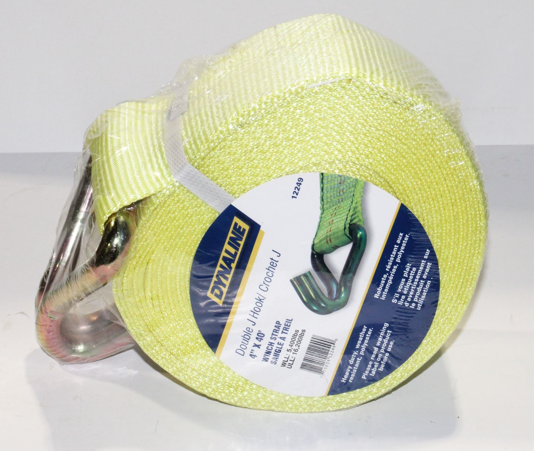 DYNALINE DOUBLE J HOOK 4  X 40' WINCH STRAP