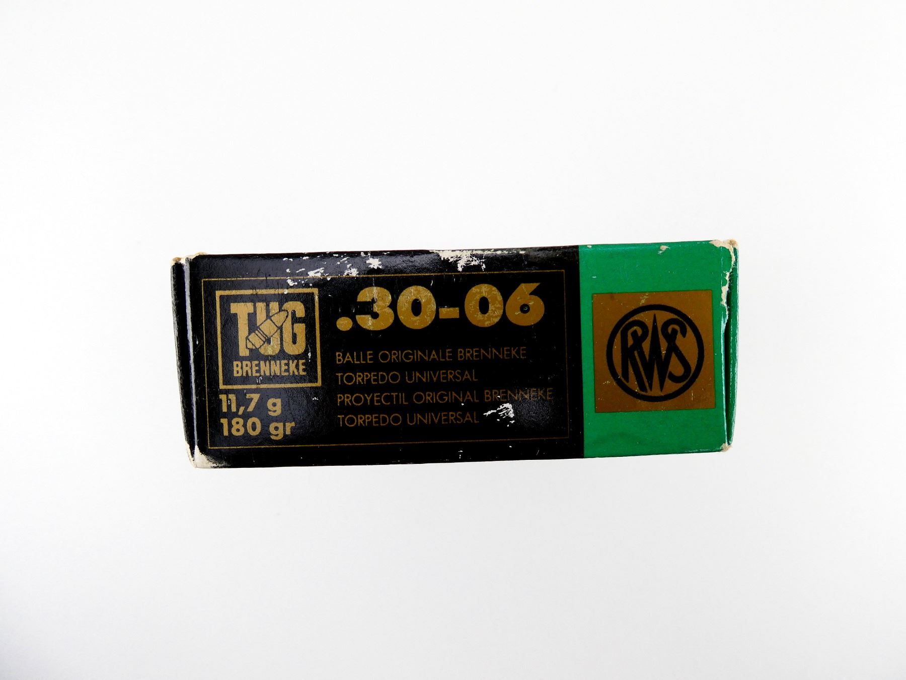 LOT INCLUDES; APPROX. (20) RNDS, 180 GRNS (STATED ON BOX NOT CONFIRMED), ORIGINAL BRENNEKE TORPEDO, UNOPENED.