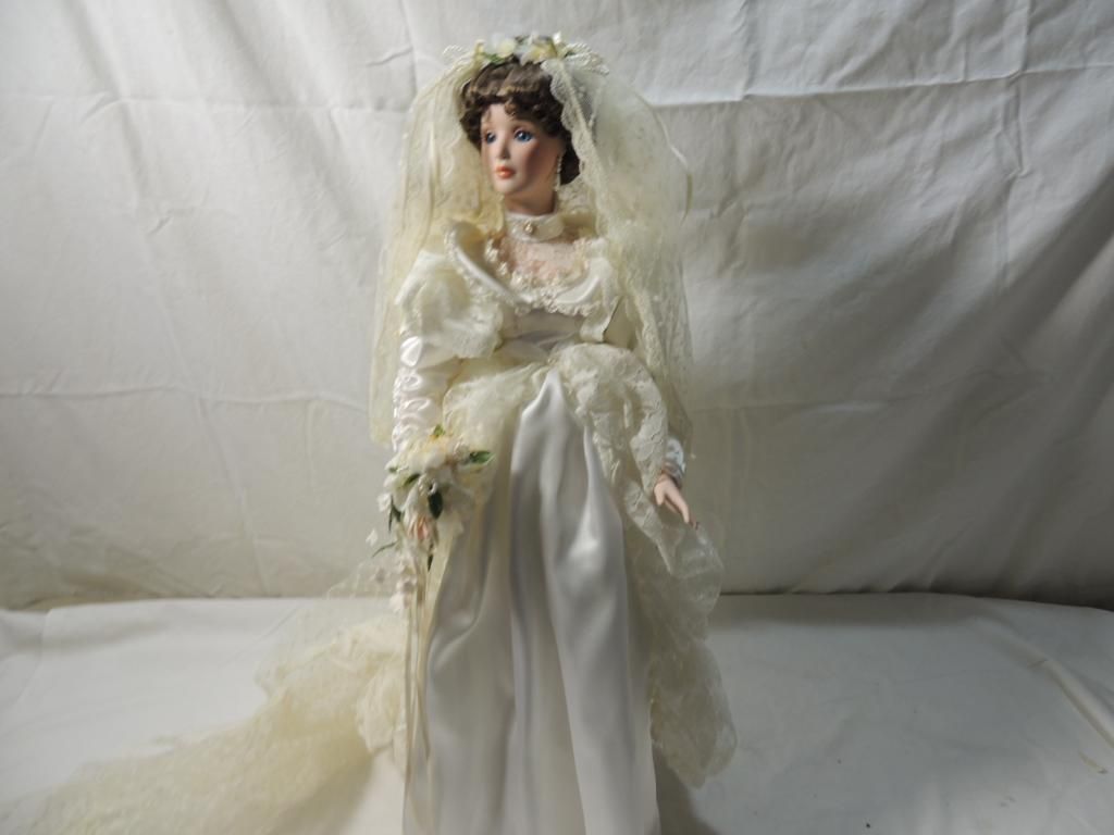 DOLL NO. 1079 COA INCLUDED. LIMITED EDITION. 1993 DYNASTY DOLL COLLECTION. FINEST BISQUE PORCELAIN VICTORIAN STYLE BRIDE. BROWN HAIR 24" TALL. AS SHOWN SEE PHOTO FOR MORE DETAILS .
