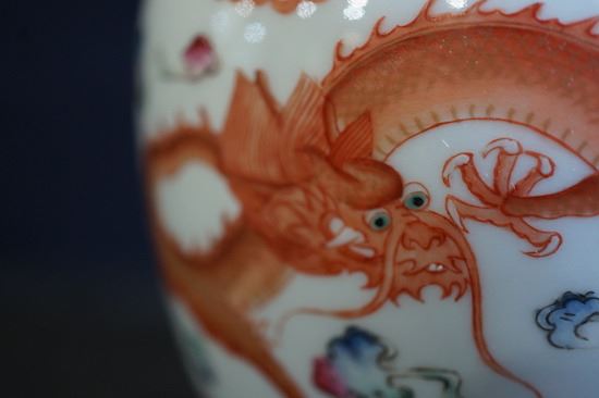 "Da Qing Guang Xu Nian Zhi" mark, small Famille - Rose "Dragon" vase with two ears