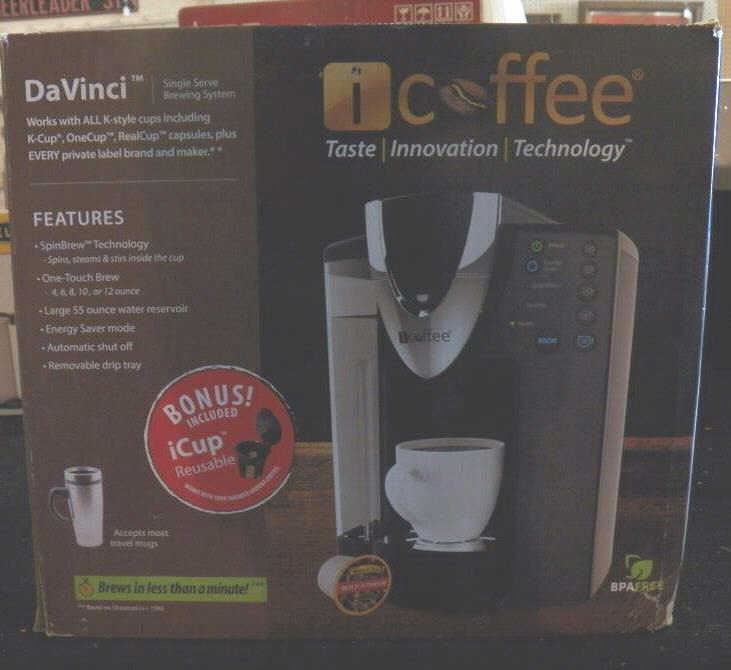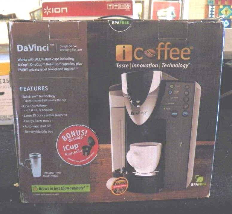 iCoffee DaVinci K-Cup Compatible SpinBrew OneTouch Brew Technology Single Serve Coffee Brewer with Reusable iCup and Removable Drip Tray