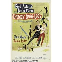 <B>Daddy Long Legs (Twentieth Century Fox, 1955)</B></I> One Sheet (27" X 41"). Fred Astaire and Leslie Caron star in this tale of a girl who lives in an orphanage until a "sponsor" comes to her aide. They eventually fall in love and dance their way to romance. This was one of the great musicals of the 1950s and this poster is reminiscent of the art of this era. This poster has been linen-backed but hasn't had any restoration whatsoever. There are still a couple of very tiny chips on the edges of the border. Very Fine + on Linen.