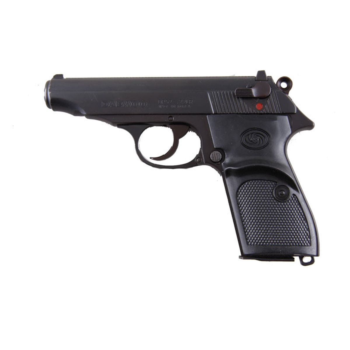 Daewoo DP52 Cal .22LR SN:400045 Double action/single action semi-auto pocket pistol made in Korea for Kimber. Matte blued finish, black checkered hard rubber grips, 3 3/4" barrel with 3 white dot fixed sights, good bore and action. Included in black plDouble action/single action semi-auto pocket pistol made in Korea for Kimber. Matte blued finish, black checkered hard rubber grips, 3 3/4" barrel with 3 white dot fixed sights, good bore and action. Included in blackplastic carry case with instructions. Condition: Near new with no sign of use. 1 magazine. 'NOT CALIFORNIA LEGAL"