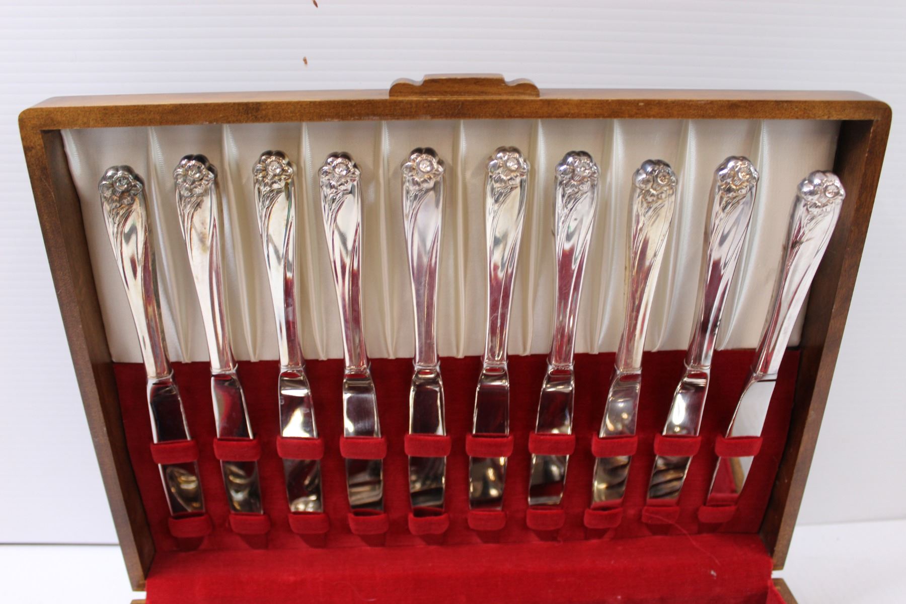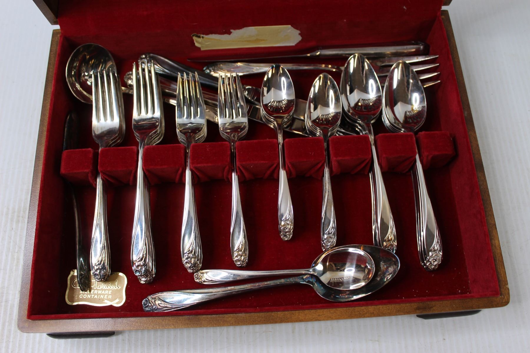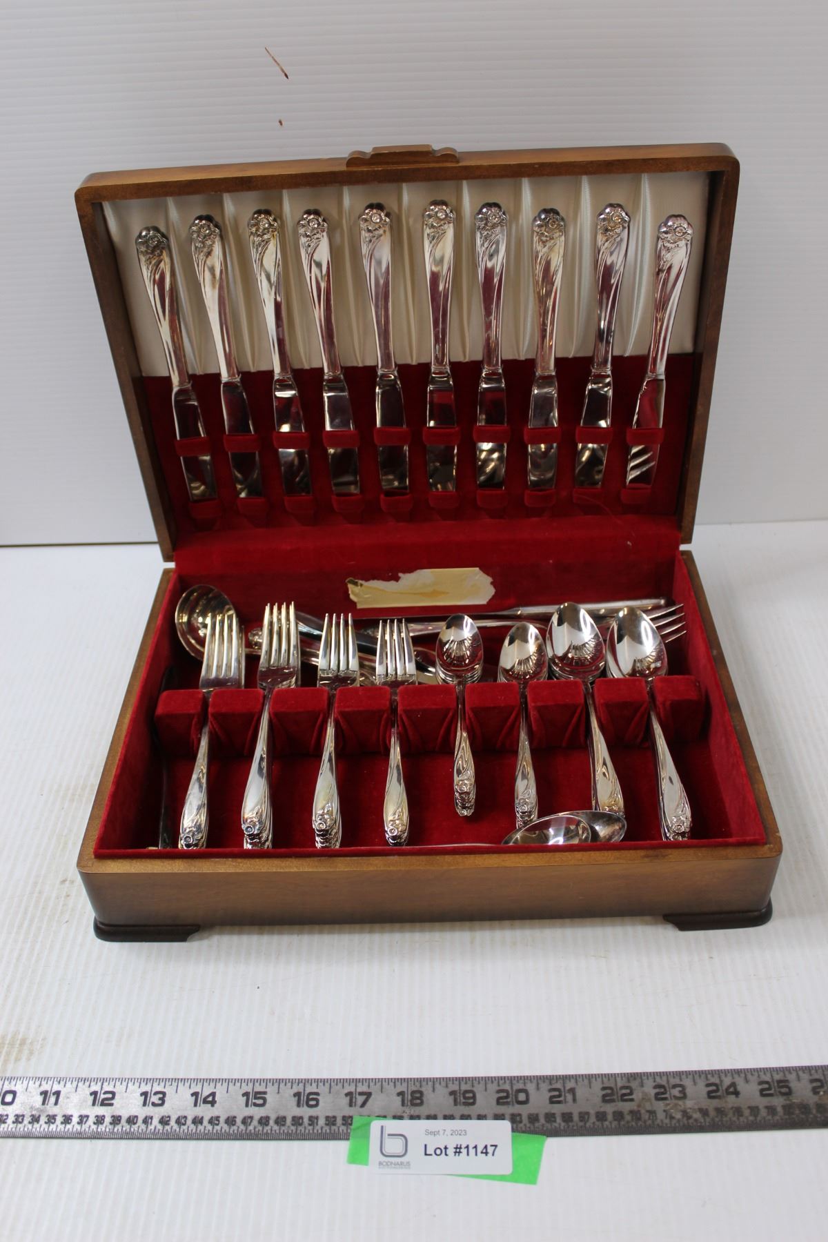 "Daffodil" Silver Plate Pattern by 1847 Roger Bros-1950 Set in Wood Chest