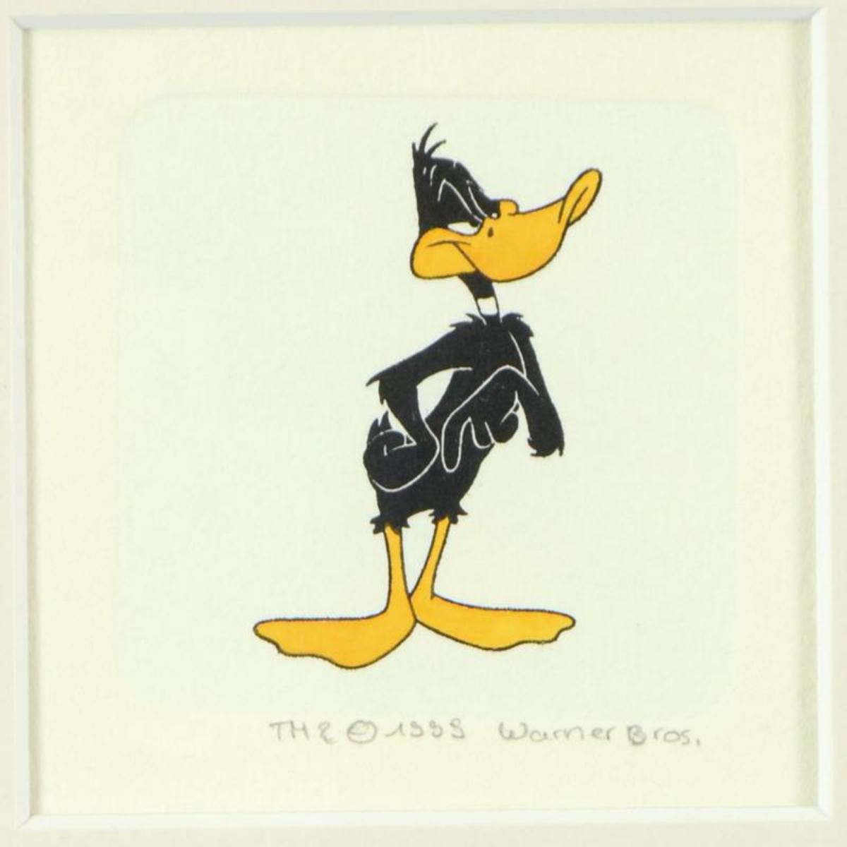 "Daffy Duck (Looking to the Side)" is a limited edition etching on paper with hand-tinted coloring from Warner Bros, numbered and dated 1999. This piece comes framed. Measures approx. 9" x 9" (with frame), 1.5" x 2.5" (image). Reference #: 235707.