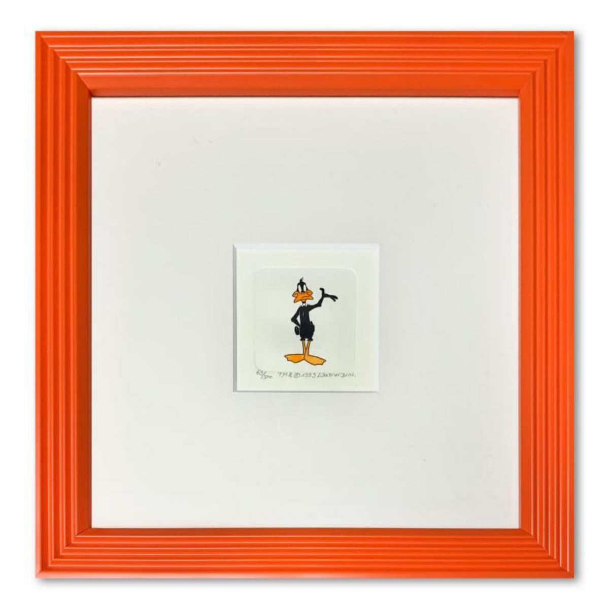 "Daffy Duck" is a limited edition etching on paper with hand-tinted coloring from Warner Bros, numbered and dated 1999. This piece comes framed. Measures approximately 9" x 9" (with frame), 2" x 2" (image). Reference #: 245198.