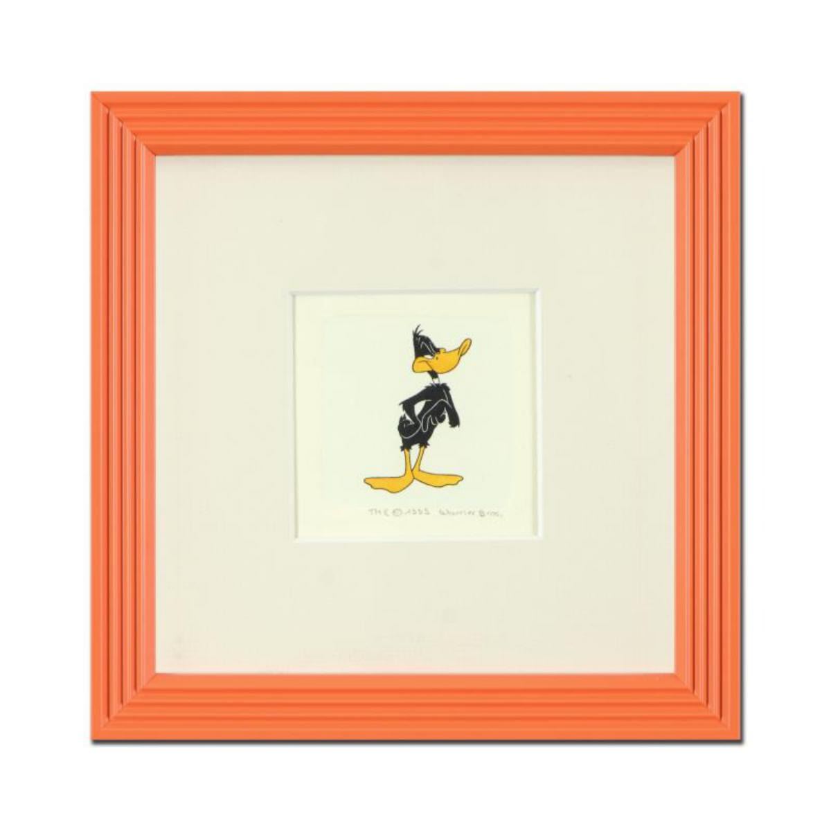 "Daffy Duck (Looking to the Side)" is a limited edition etching on paper with hand-tinted coloring from Warner Bros, numbered and dated 1999. This piece comes framed. Measures approx. 9" x 9" (with frame), 1.5" x 2.5" (image). Reference #: 235707.