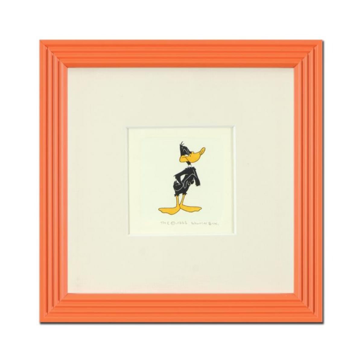 "Daffy Duck (Looking to the Side)" is a limited edition etching on paper with hand-tinted coloring from Warner Bros, numbered and dated 1999. This piece comes framed. Measures approx. 9" x 9" (with frame), 1.5" x 2.5" (image).