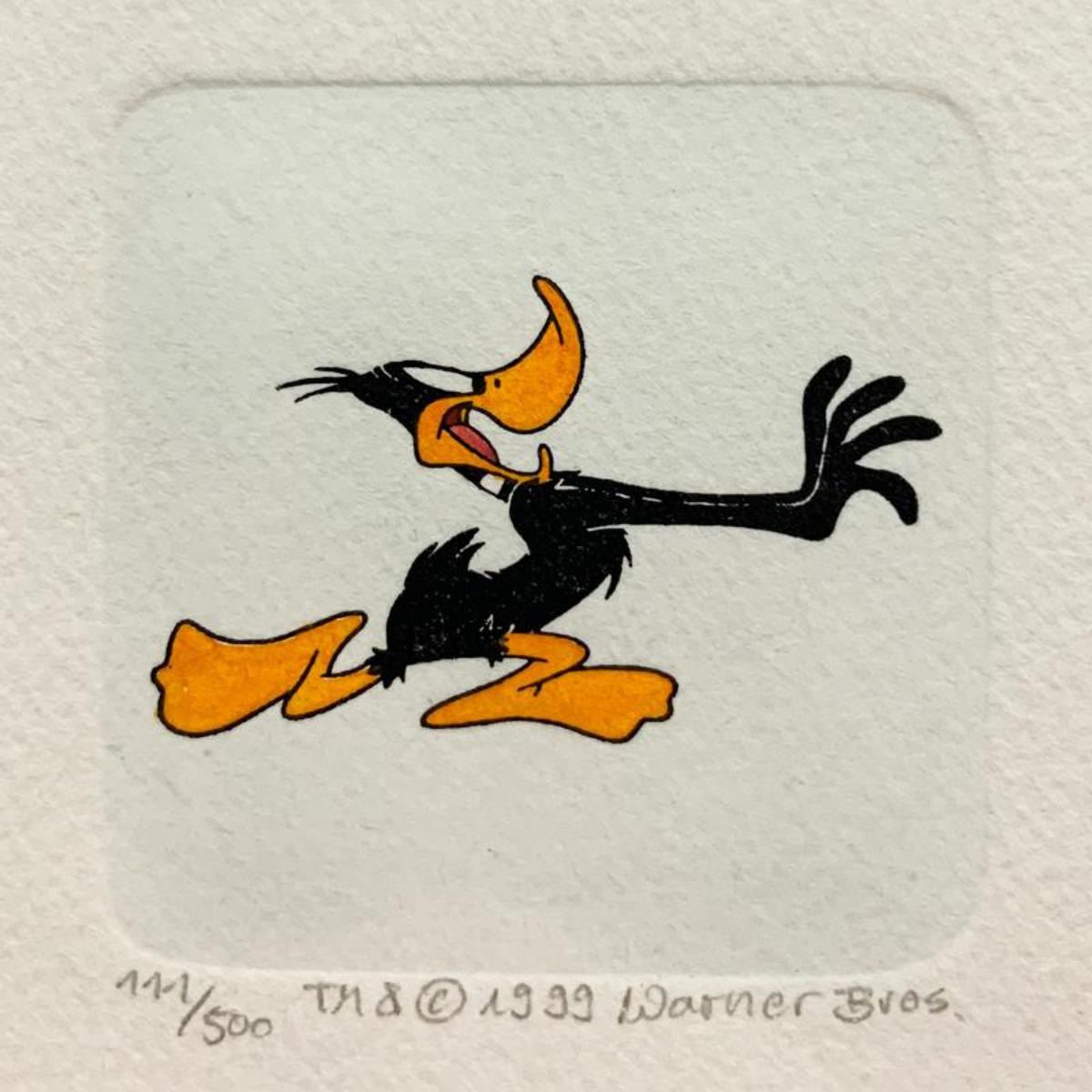 "Daffy Duck" is a limited edition etching on paper with hand-tinted coloring from Warner Bros, numbered and dated 1999. This piece comes framed. Measures approximately 9" x 9" (with frame), 2" x 2" (image). Reference #: 245252