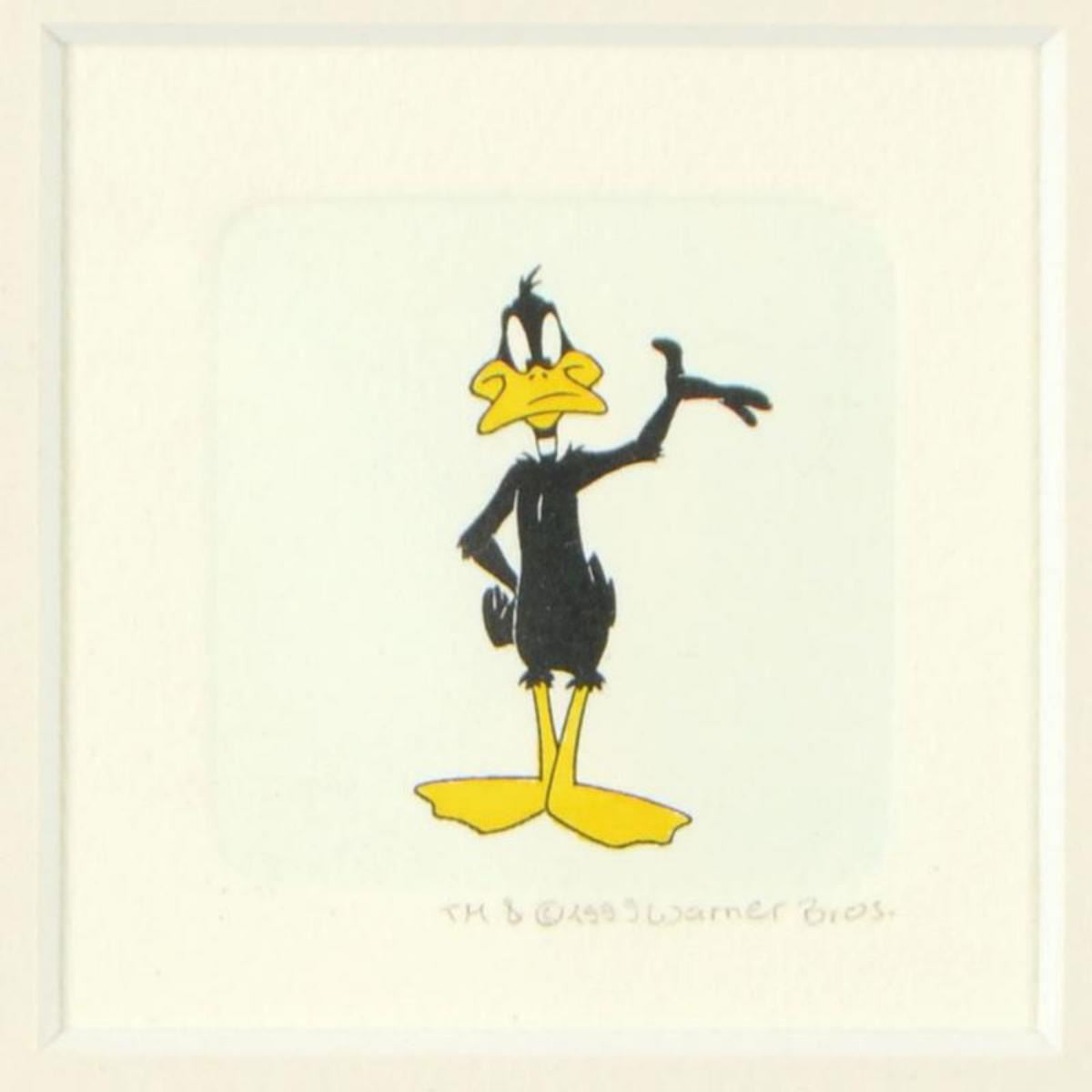 "Daffy Duck (Looking to the Side)" is a limited edition etching on paper with hand-tinted coloring from Warner Bros, numbered and dated 1999. This piece comes framed. Measures approx. 9" x 9" (with frame), 2" x 1.5" (image). Reference #: 235709