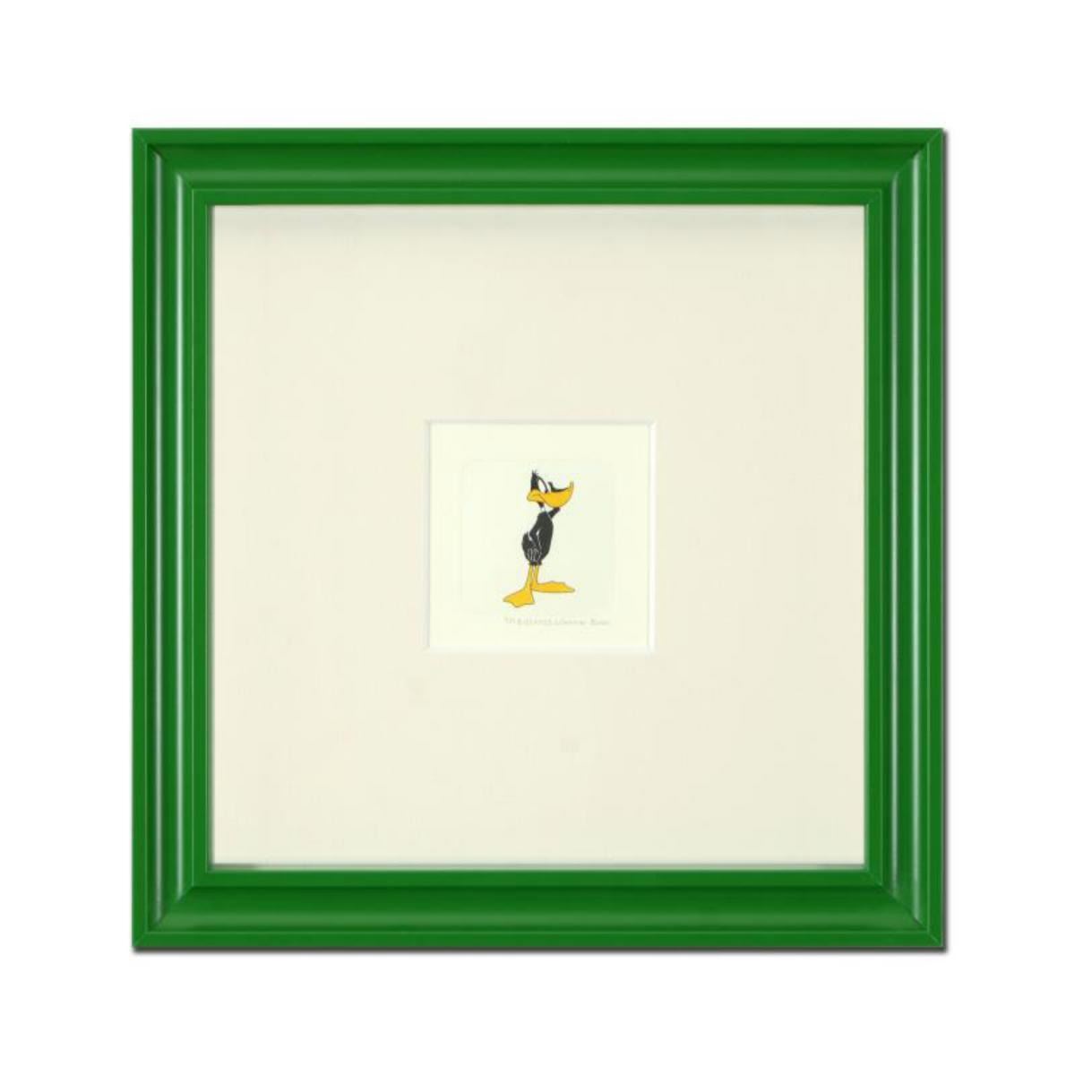 "Daffy Duck (Looking to the Side)" is a limited edition etching on paper with hand-tinted coloring from Warner Bros, numbered and dated 1999. This piece comes framed. Measures approx. 9" x 9" (with frame), 1" x 2" (image). Reference #: 235701.
