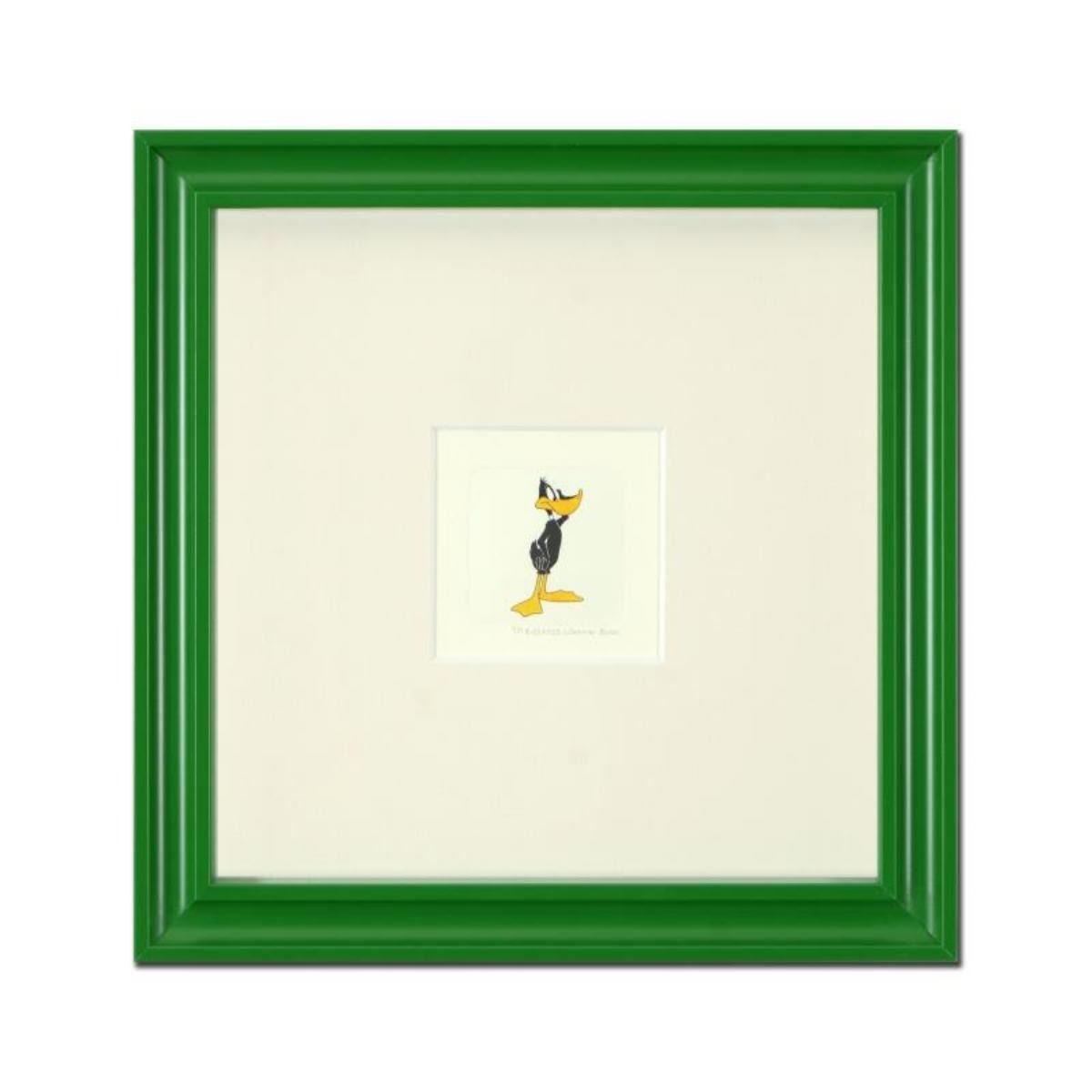 "Daffy Duck (Looking to the Side)" is a limited edition etching on paper with hand-tinted coloring from Warner Bros, numbered and dated 1999. This piece comes framed. Measures approx. 9" x 9" (with frame), 1" x 2" (image).