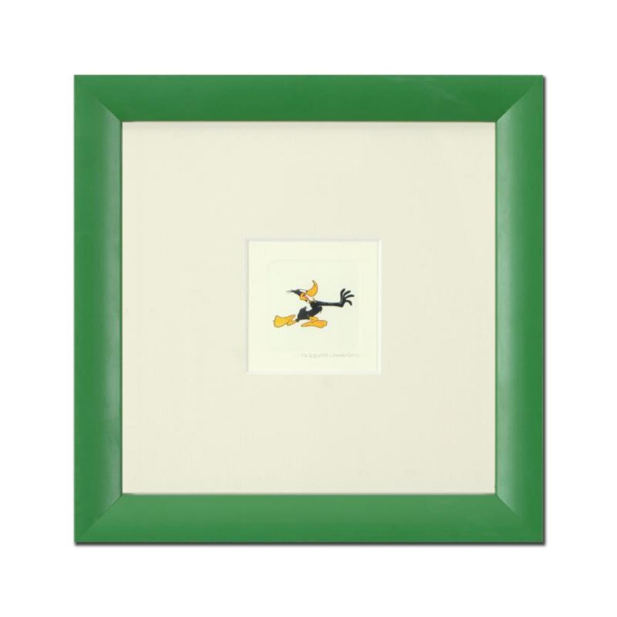 "Daffy Duck (Running)" is a limited edition etching on paper with hand-tinted coloring from Warner Bros, numbered and dated 1999. This piece comes framed. Measures approx. 9" x 9" (with frame), 1" x 2" (image). Reference #: 235703.