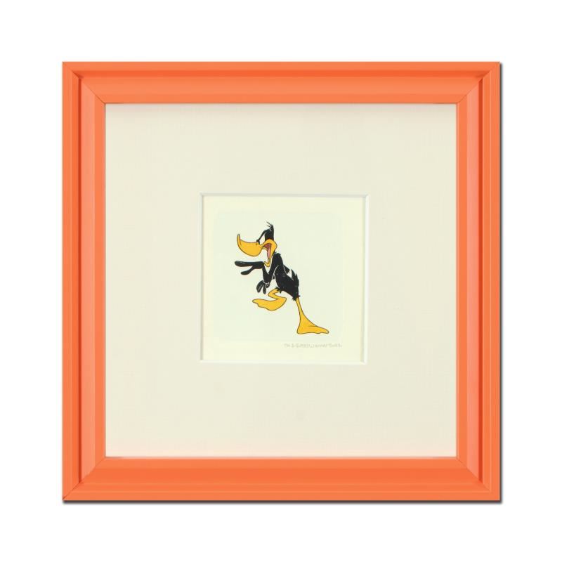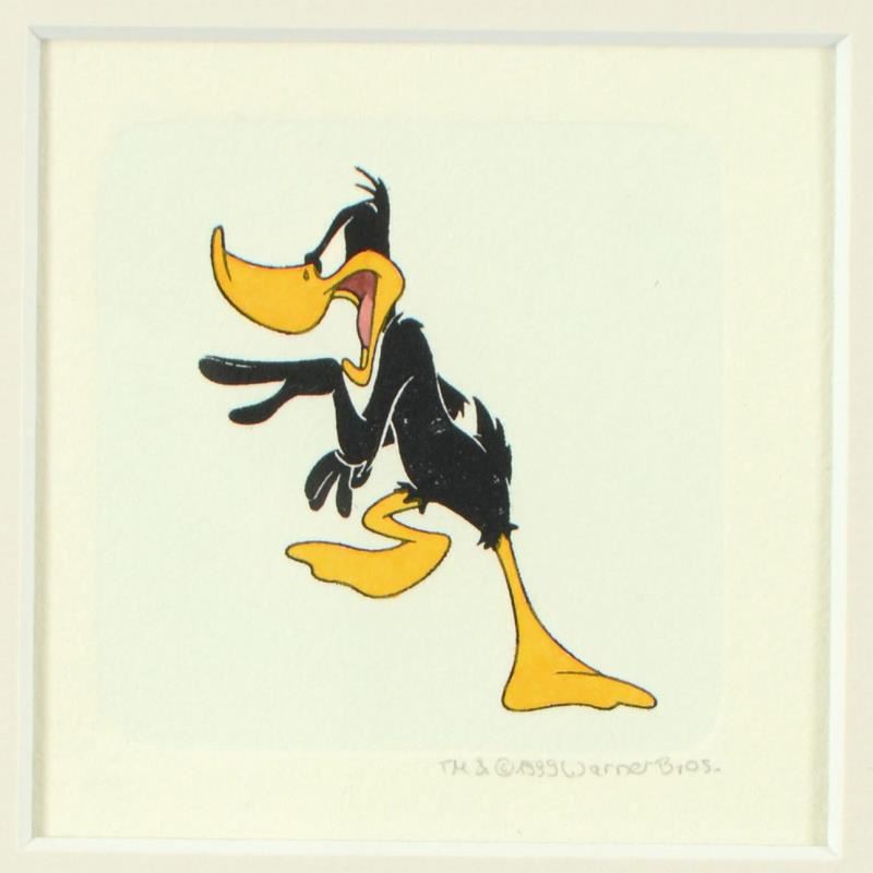 "Daffy Duck" is a limited edition etching on paper with hand-tinted coloring from Warner Bros, numbered and dated 1999. This piece comes framed. Measures approx. 9" x 9" (with frame), 2" x 2.5" (image).
