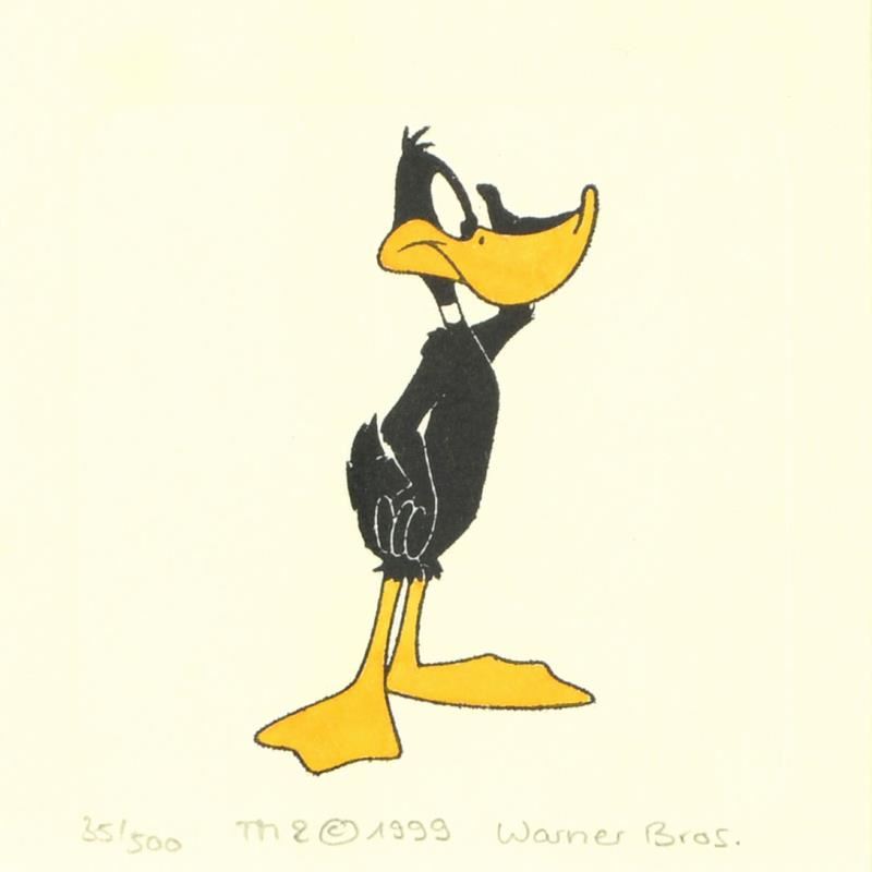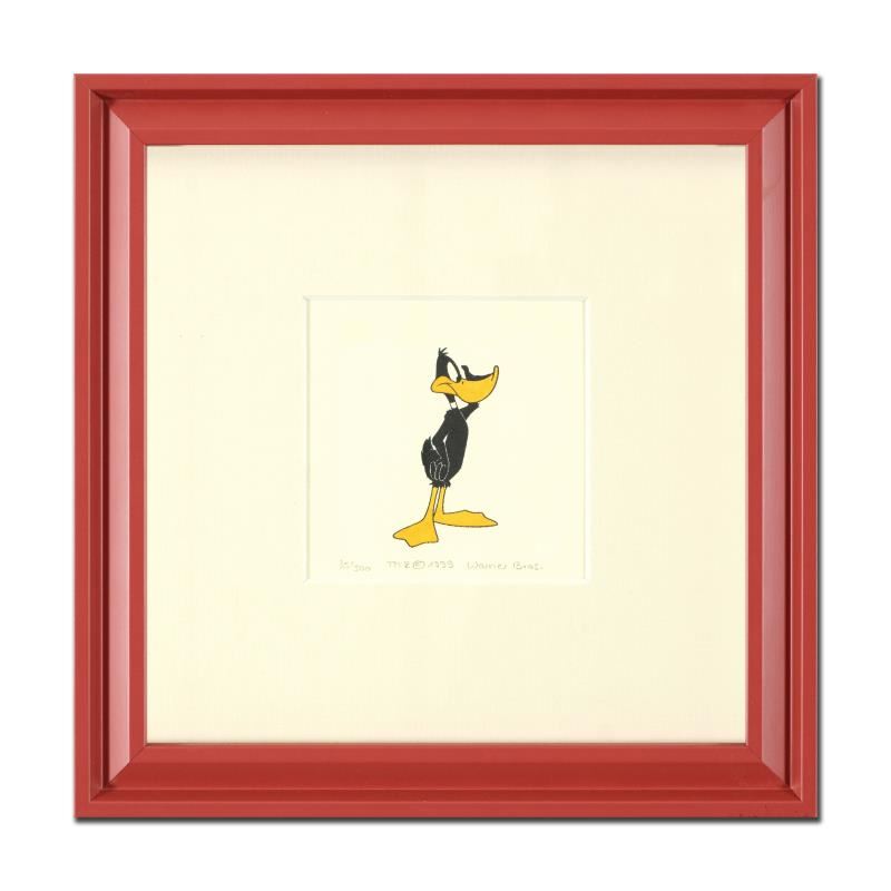 "Daffy Duck" is a limited edition etching on paper with hand-tinted coloring from Warner Bros, numbered and dated 1999. This piece comes framed. Measures approx. 9" x 9" (with frame), 1.5" x 2.5" (image).