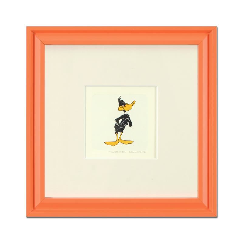 "Daffy Duck (Looking to the Side)" is a limited edition etching on paper with hand-tinted coloring from Warner Bros, numbered and dated 1999. This piece comes framed. Measures approx. 9" x 9" (with frame), 1.5" x 2.5" (image).