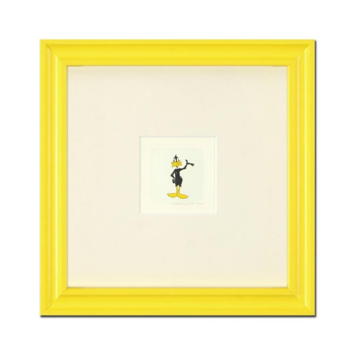 "Daffy Duck (Looking to the Side)" is a limited edition etching on paper with hand-tinted coloring from Warner Bros, numbered and dated 1999. This piece comes framed. Measures approx. 9" x 9" (with frame), 2" x 1.5" (image).
