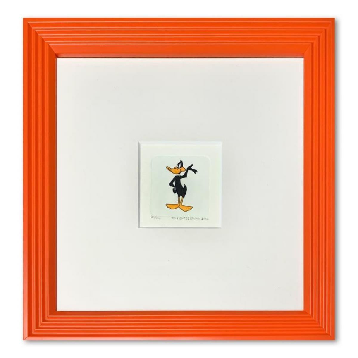 Daffy Duck by Looney Tunes. "Daffy Duck" is a limited edition etching on paper with hand-tinted coloring from Warner Bros, numbered and dated 1999. This piece comes framed. Measures approximately 9" x 9" (with frame), 2" x 2" (image).