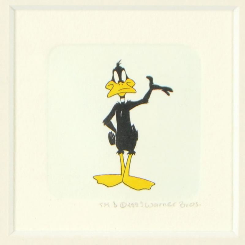 "Daffy Duck (Looking to the Side)" is a limited edition etching on paper with hand-tinted coloring from Warner Bros, numbered and dated 1999. This piece comes framed. Measures approx. 9" x 9" (with frame), 2" x 1.5" (image).