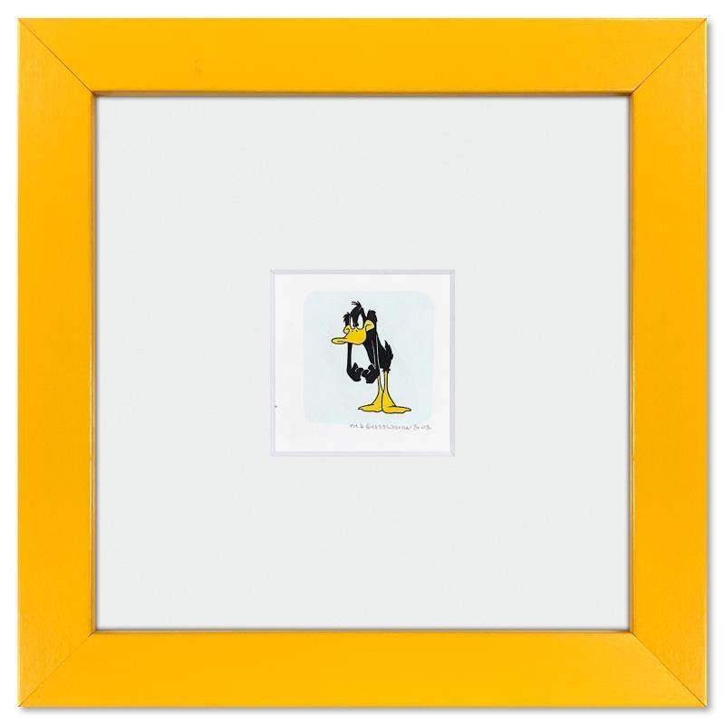 "Daffy Duck" is a limited edition etching on paper with hand tinted coloring from Warner Bros., numbered and dated 1999. This piece comes framed. Measures approx. 9" x 9" (frame), 1.5" x 1" (image).