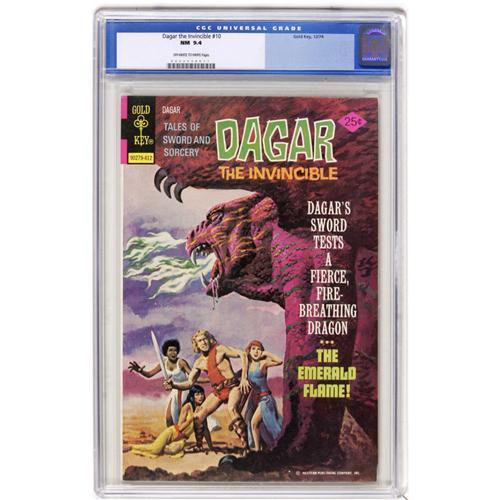 <B>Dagar the Invincible #10 (Gold Key, 1974) CGC NM 9.4 Off-white to white pages.</B></I> Overstreet 2004 NM- 9.2 value = $14. CGC census 2/07: 3 in 9.4, none higher.<BR><BR><b>Shipping:</b> Comics - Slabbed (certified) (<a target="_blank" href="http://www.heritageauctions.com/common/shipping.php">view shipping information</a>)