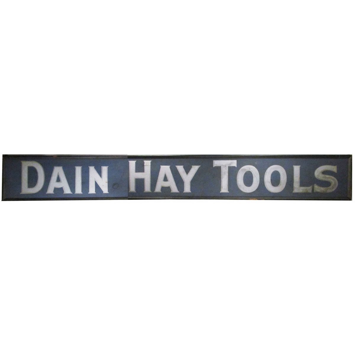 Dain Hay Tools Outdoor Wood Sand Sign. One sided. Excellent original condition. 8 feet X 12 3/4 inches.