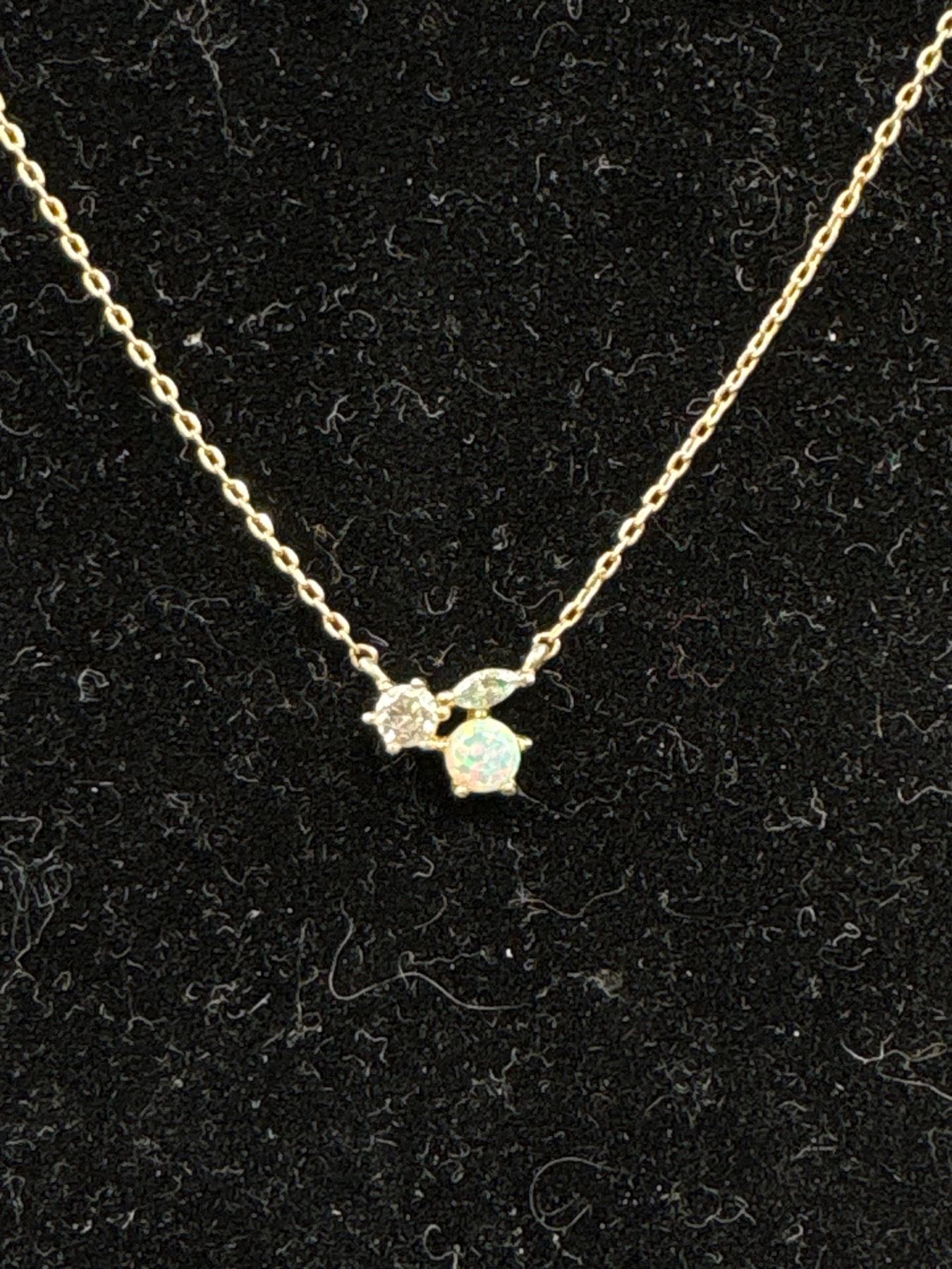 Dainty Vintage Chain w/ Australian Opal Stone Pendant Necklace Unmarked