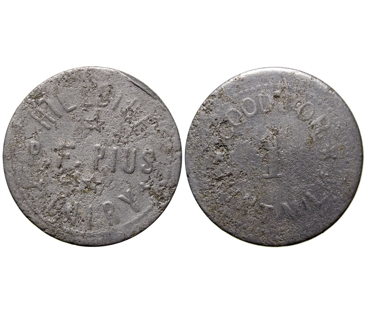 Hillside/P.F. Pius/Dairy/GOOD FOR ONE QUART MILK/Weak and corroded/octagonal aluminum 27mm. Rare R10-SpoonerWIS-351 -60692